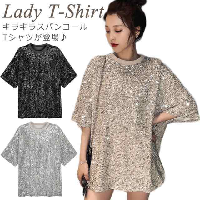 スパンコール Tシャツ 半袖Tシャツ クールネック キラキラ Tシャツ レディース スパンコール トップス ダンス衣装 ダンスウェア パーティー コスチューム スパンコール衣装 イベント衣装