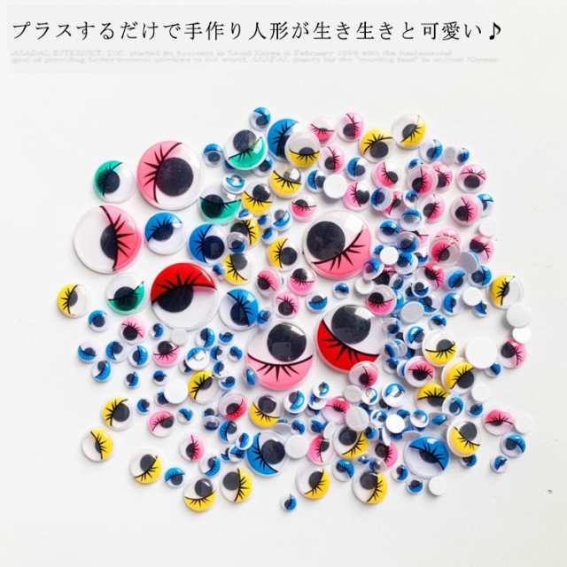 | プラスするだけで手作り人形が生き生きと可愛い♪ キョロキョロと動く人形目玉! いろんな色やサイズと十分な量があるので、お子様と一緒に手作りするのが楽しい。 粘着タイプなので、手作り作品に貼り付けるだけ! | |