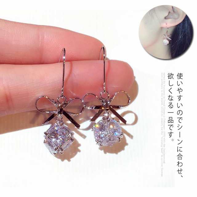 送料無料 ピアス レディース 金属アレルギー ロングピアス 揺れる ジルコン 小さい 石ピアス ジルコン アレルギーフック アレルギー対応 ホワイト ブラック 大人 可愛い