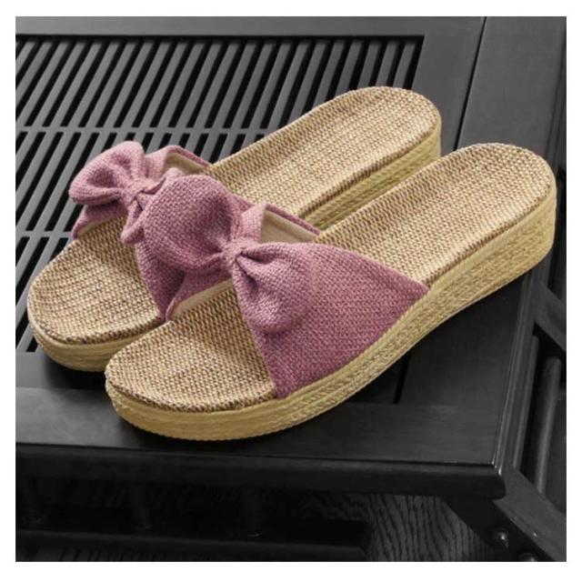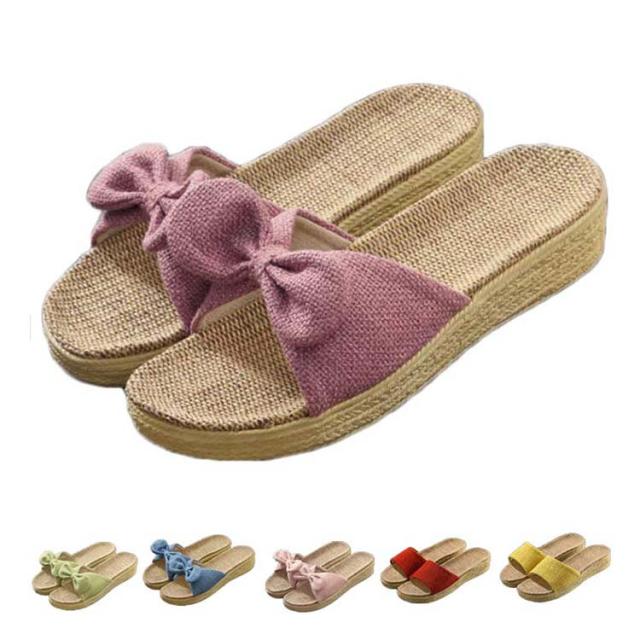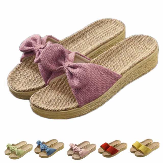 レディース スリッパ ルームシューズ リボン サンダル ビーチサンダル 亜麻 春夏 送料無料 快適 室内履き 外履き リボン付き 夏用 亜麻 ルームスリッパ 厚底 かわいい 婦人 女性 おしゃれ