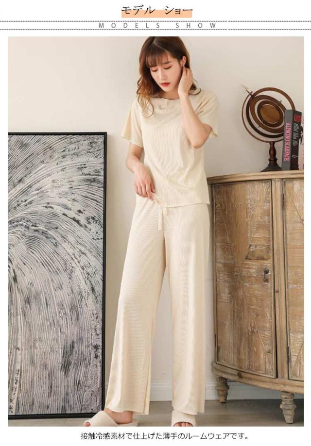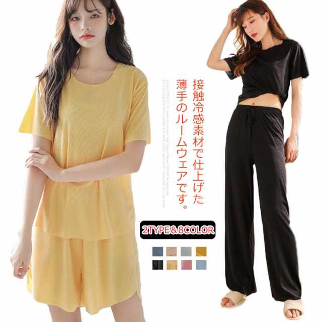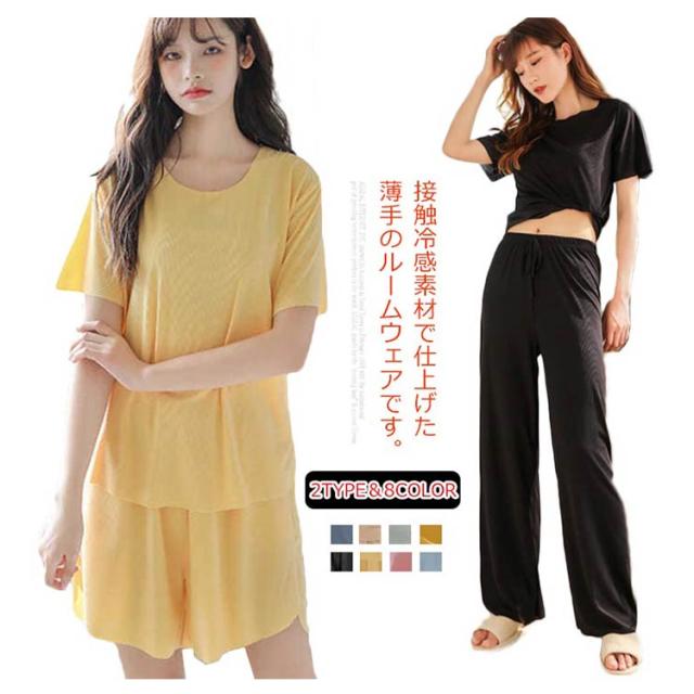 ルームウエア レディース 上下セット 接触冷感 セットアップ 半袖 長ズボン ロングパンツ ショットパンツ 2点セット 涼感 パジャマ 寝間着 部屋着 寝巻 上下セット リラックス 快適 快眠 ゆったり おしゃれ カジュアル ギフト プレゼント 春夏