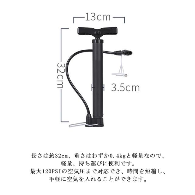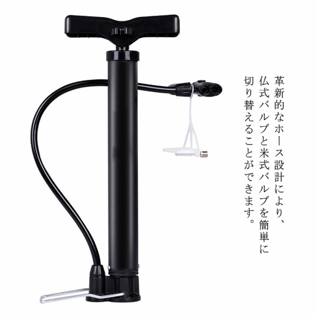 自転車 空気入れ 足踏み式 携帯ポンプ 米式 仏式 英式バルブ対応 2種バルブコネクタ付 ミニエアポンプ 小型 フットポンプ コンパクト 収納便利 ボール/浮き輪用アタッチメント付属