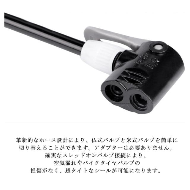 | 革新的なホース設計により、仏式バルブと米式バルブを簡単に切り替えることができます。アダプターは必要ありません。確実なスレッドオンバルブ接続により、空気漏れやバイクタイヤバルブの損傷がなく、超タイトなシールが可能になります。非ねじ式バルブエクステンダーとは互換性がありません。取り外し可能なコアを備えた仏式バルブの場合、コアをバルブステムにしっかりとねじ込むように特別な注意を払う必要があります。 人間工学に基づいたTハンドルは、「優れたグリップとプッシュ力」を提供します。ステンレススチールのフットペグが地面のポンプを安定させ、快適で効率的なポンプ動作を生み出します。取り外し可能なTハンドルは持ち運びにとても便利です。 Tハンドルにはホース収納シートがあり、ポンプのホースを固定して簡単に収納できます。 一体型ポンプ本体のデザインにより、空気漏れの事がなく、完璧な気密性に仕上げます。時間が経っても変形や錆びが出すの心配がありません。ワンピースベースは耐摩耗性と落下防止性があり、柔軟で耐靭性がよくエアホースの設計は、耐高温や耐凍性にも優れる、長時間使用いただけます。 長さは約32cm、重さはわずか0.4kgと軽量なので、軽量、持ち運びに便利です。最大120PSIの空気圧まで対応でき、時間を短縮し、手軽に空気を入れることができます。 安全で楽しい乗り心地が得られるように設計されています。ゲージ付きのこのミニバイクポンプは、サイズがはるかに大きいため、ポンプストロークあたりの空気量が多い「フルサイズフロアポンプ」の代わりにはなりません。たる。 バスケットボール、ラグビー、フットボールなどのスポーツボールを膨らませるエアニードルを装備しています。マウンテンバイクやロードバイク、電動自転車、ベビーカー、車椅子に特に適しています。軽量素材とポータブルデザインで、いつでもどこでもタイヤをポンピングできます。 | |