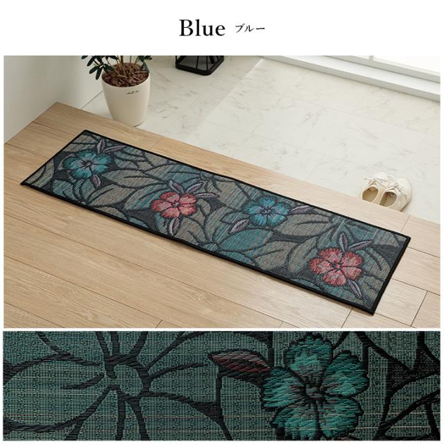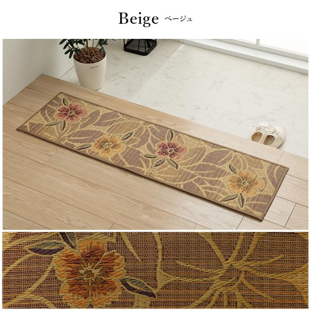 Fなでしこ 玄関マット 上り框 マット い草 国産 日本製 花柄 モダン柄 お手入れ簡単 夏 抗菌防臭 調湿 消臭 空気清浄 汚れにくい 35×90cm ベージュ ブラック ブルー