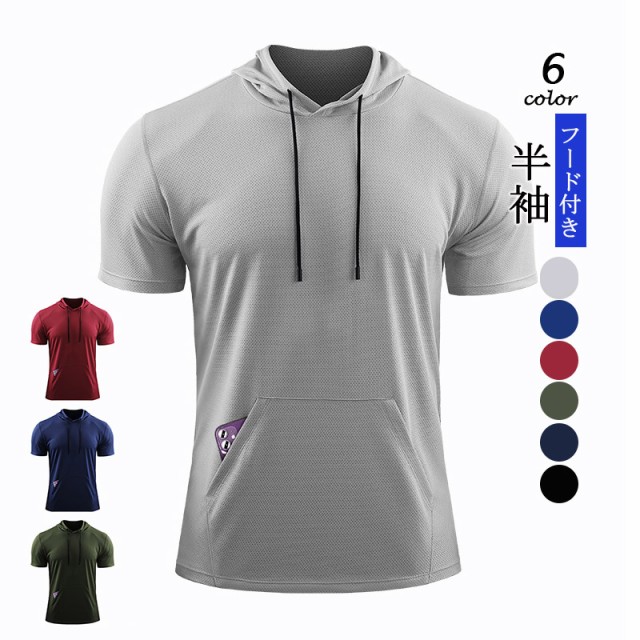 【ポイント5倍!】パーカー メンズ フード付き 半袖パーカー プルオーバ シンプル カジュアル 大きいサイズ レイヤード ポケット バスケットボール 吸汗速乾 運動 夏