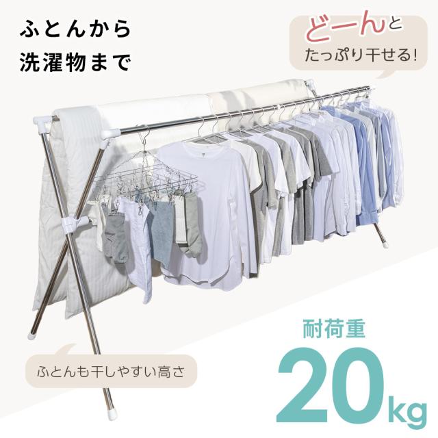 布団にも洗濯物にも対応。シンプル&大容量のX型布団干し。
