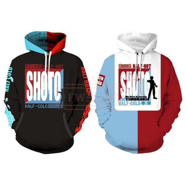 僕のヒーローアカデミア 轟焦凍コスプレ衣装 スウェットパーカー フード付き 春秋コート仮装変装コスチューム 男女兼用3Dプリント服