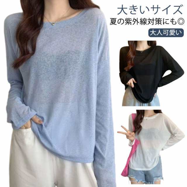 カットソー レディース シアートップス 長袖 ロンT 夏 シアー ロンt トップス UV対策 tシャツ 長袖 インナー Tシャツ レイヤード 重ね着 クルーネック シースルー 春 薄手 シアートップス おしゃれ きれいめ 大人可愛い 着痩せ 紫外線対策 透け感 大きいサイズ
