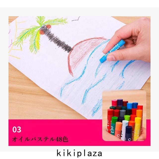 ●オイルパステル48色●クレヨン24色●色鉛筆24本●水性マーカー(細)24色●水性マーカー(太)12色●固形水彩絵の具18色など