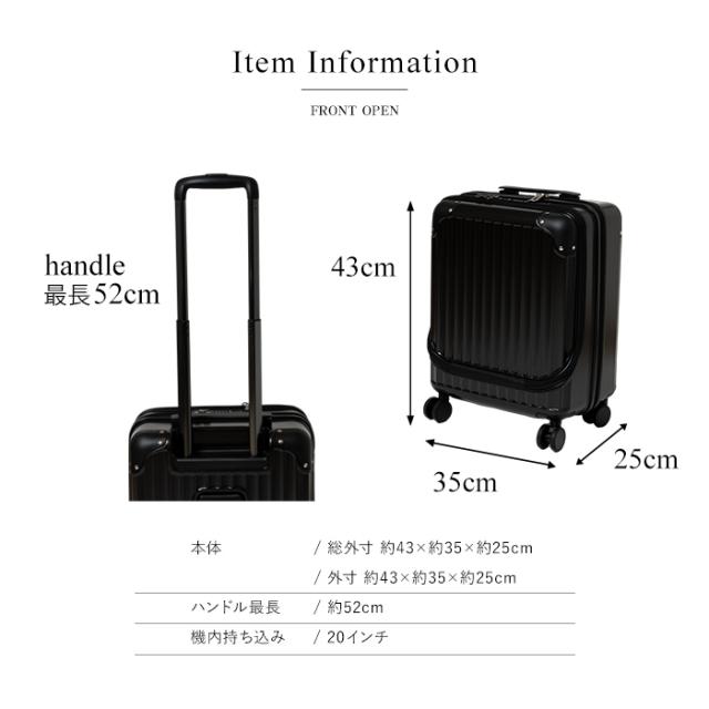 機内持ち込み対応 スーツケース キャリーケース 20インチ フロントオープン キャリーバッグ 旅行 軽量 メンズ シンプル 静音 双輪キャスター TSAロック ドリンクホルダー ハードケース ビジネス 修学旅行 国内旅行 海外旅行 送料無料