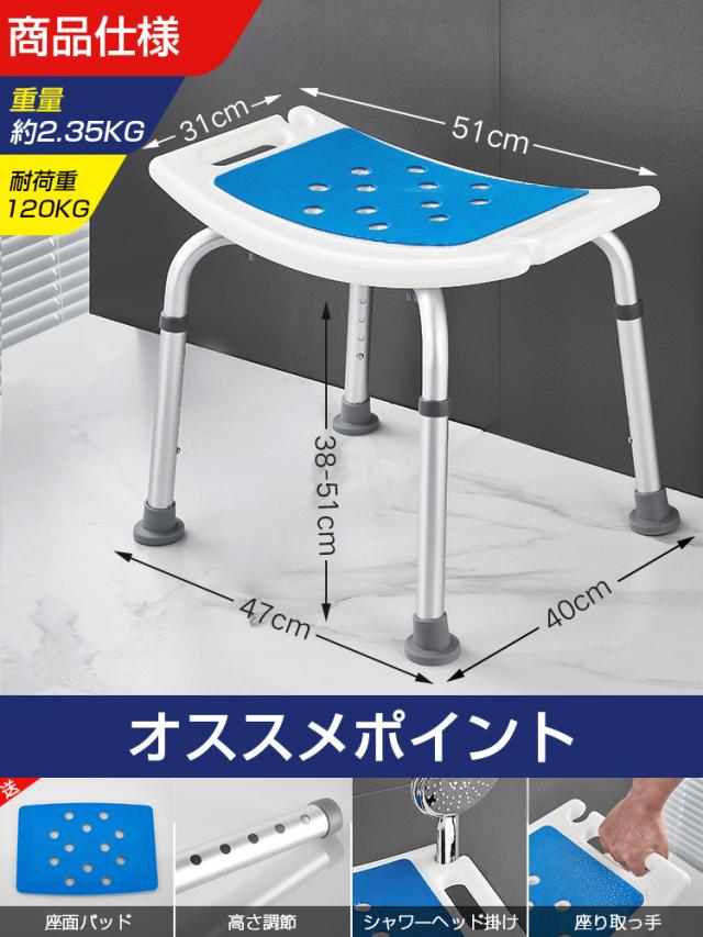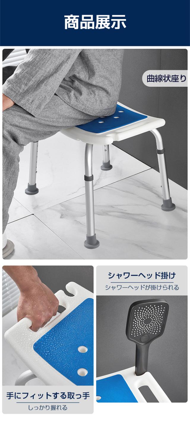 シャワーチェア 介護 椅子 風呂 高さ調節 バスチェア 高齢者 お風呂椅子 座椅子 介護用 耐荷重120kg 滑り止め 立つ・座る サポート プレゼント