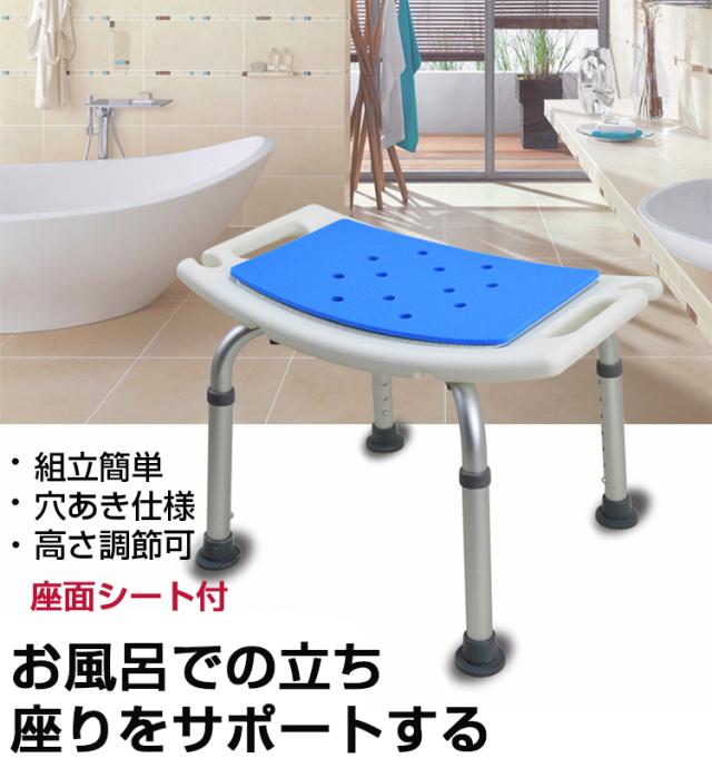 座椅子 風呂 シャワーチェア 介護 穴あき ハイタイプ 介助 高め 風呂イス 背もたれなし 浴室チェアー おしゃれ 伸縮 高さ6段階調整 風呂ベンチ 入浴 補助 お年寄り 老人の日