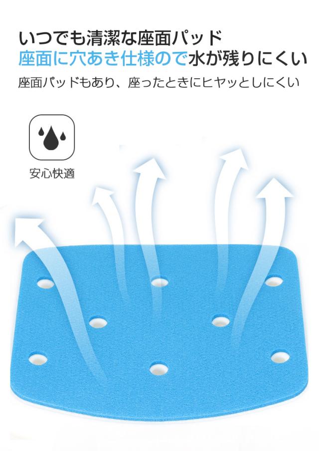 排水穴付きの座面で、水にも溜まりにくくなっています。