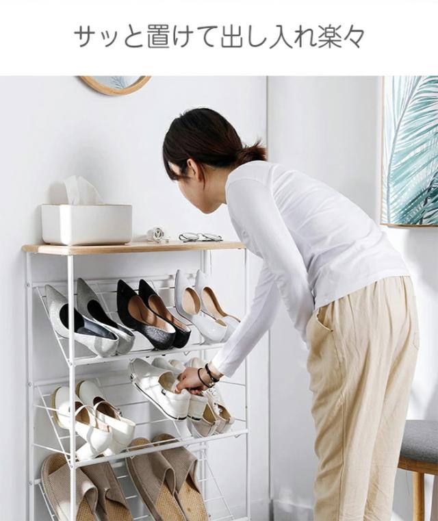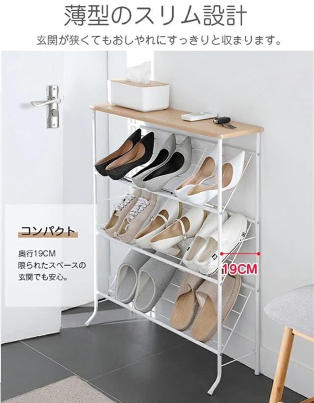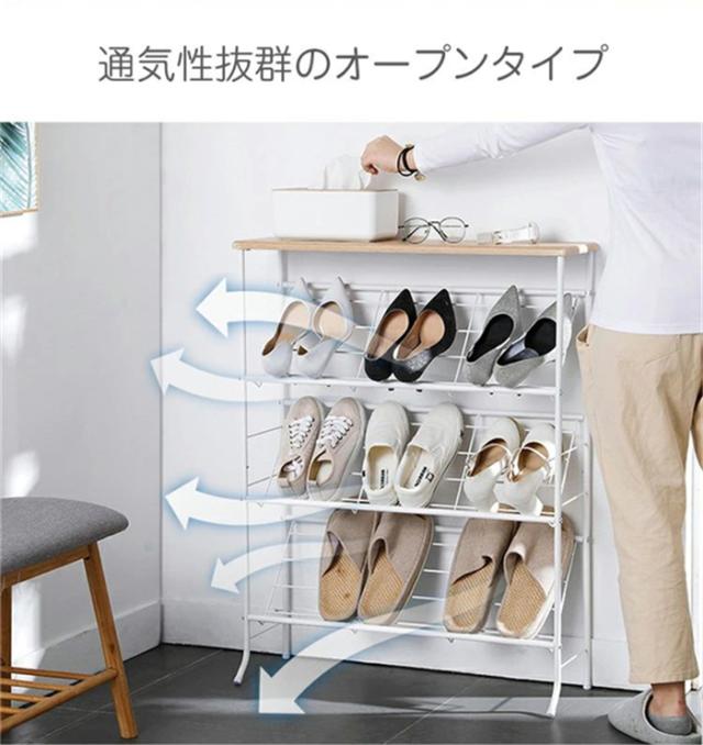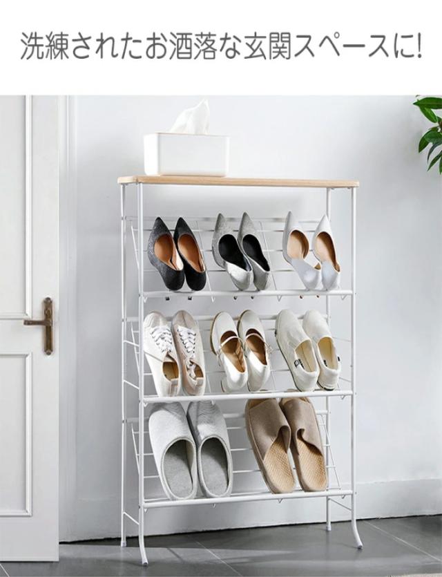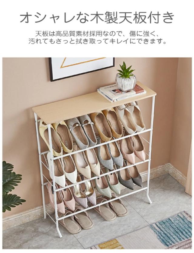 シューズラック 下駄箱 スリム 収納 靴箱 省スペース 4段 天板付き おしゃれ 北欧 突っ張り 一人暮らし 幅70 木製 大容量 軽量 狭い 玄関 室内 オープンラック 靴ラック コンパクト 母の日 プレゼント