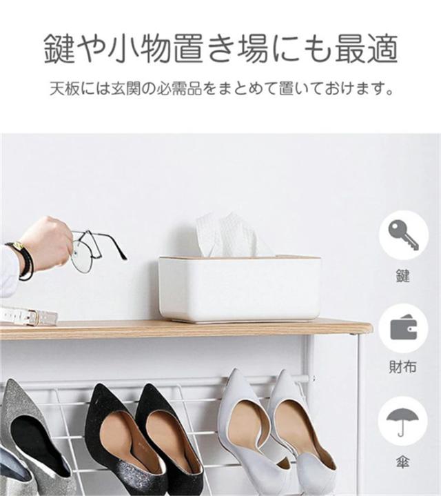 天板は高品質素材採用なので、傷に強く、汚れてもさっと拭き取ってキレイにできます。 シューズラックとしての機能だけでなく、玄関小物の置き場としても活躍します。