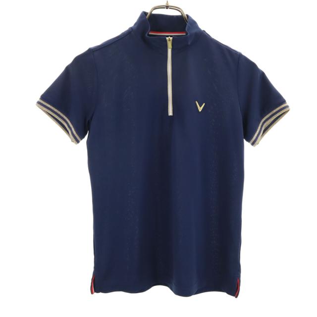 キャロウェイ ゴルフ 半袖 ハーフジップ ポロシャツ M ネイビー Callaway レディース