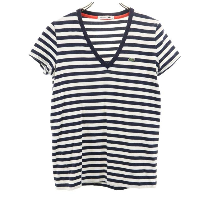 ラコステ ボーダー柄 フレンチスリーブ Vネック Tシャツ 36 ネイビー LACOSTE レディース