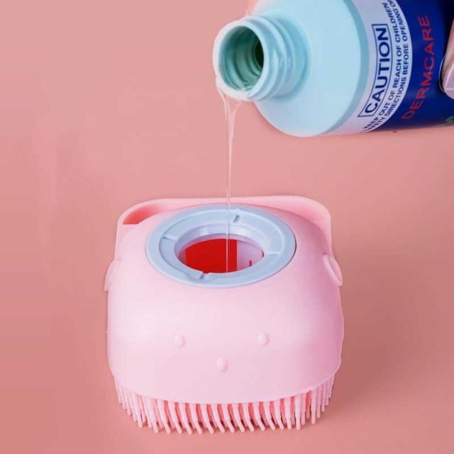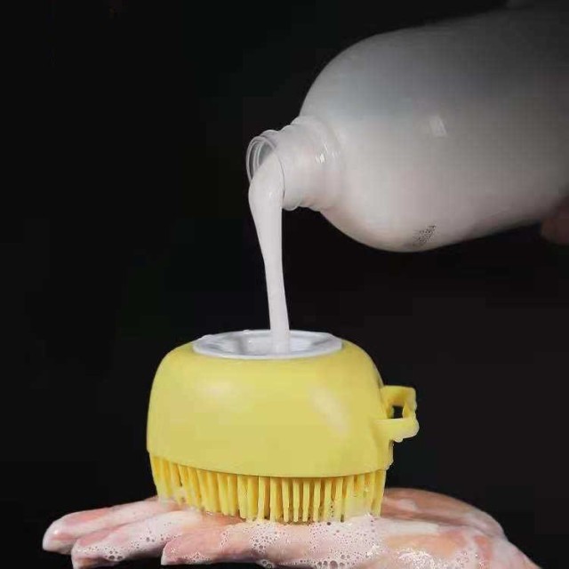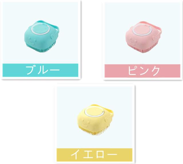 ペット シャワーブラシ 猫 犬 バスブラシ マッサージブラシ クリーナー ブラシ 入浴ブラシ 洗剤入れる 猫用品 犬用品 泡立て 柔らかい 血液循環促進 耐久性 ペット 清潔 お風呂 ワンタッチ ブルー ピンク イエロー