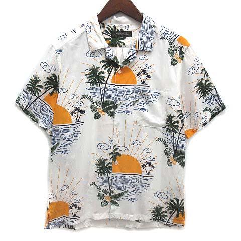 【中古】ナノユニバース nano universe レーヨン アロハシャツ オープンカラー 半袖 ホワイト 白 S メンズ