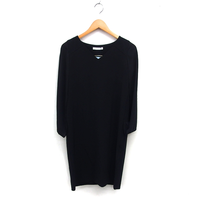 【中古】未使用品 トーナル TONAL タグ付き ケープスリーブ Iライン ワンピース ひざ丈 ドレス シフォン Vネック 38