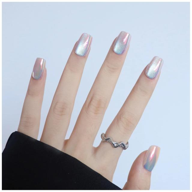 Lwenjing ネイルチップ 24枚入 手作りネイル ショート 春夏 人気 和風 かわいい シンプル おしゃれ 花嫁ネイル 光沢 つけ爪 両面テープ