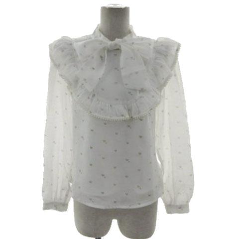 | 仕様 | ブラウス ボウタイ フリル パールビーズ 長袖 透け感 ハートドット柄 後ろジップ、スプリングフック留め |