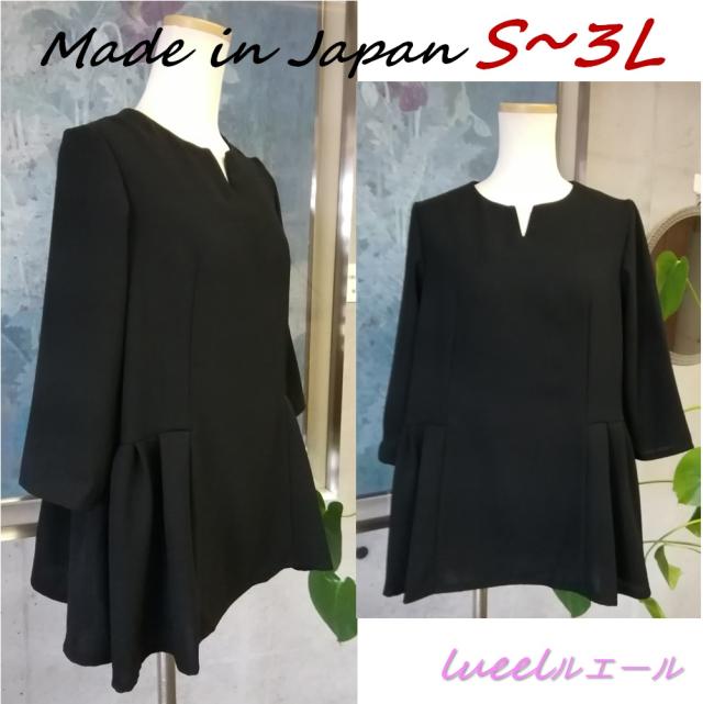 日本製 《S〜3L》喪服 ゆったりタックペプラム ブラックフォーマルブラウス 117300-20