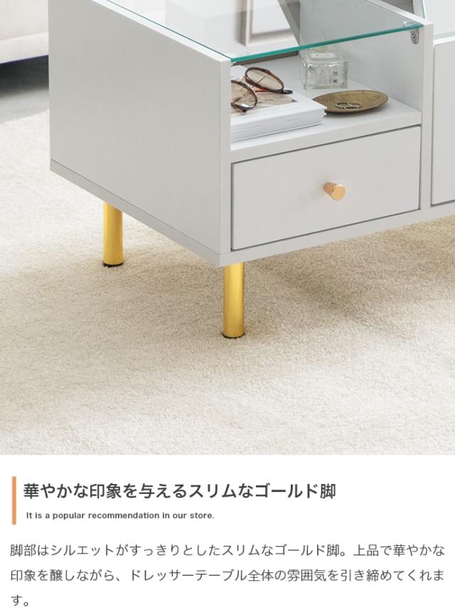★国内メーカー保証付★ ドレッサーテーブル センターテーブル 2Way(幅86cm) 大理石調天板 強化ガラス コンパクト ワンルーム メーカー直送 送料無料