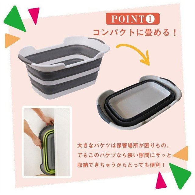 軽量 コンパクト シリコン 丈夫 折り畳み洗い桶 折り畳みバケツ 排水コック付き