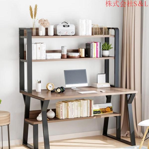モダンなデスク収納ラックシンプルなコンピュータデスクパソコンデスクパソコンデスク4段組立簡単学生用学習デスクS&L木の鋼のコンピュータ机省スペース設