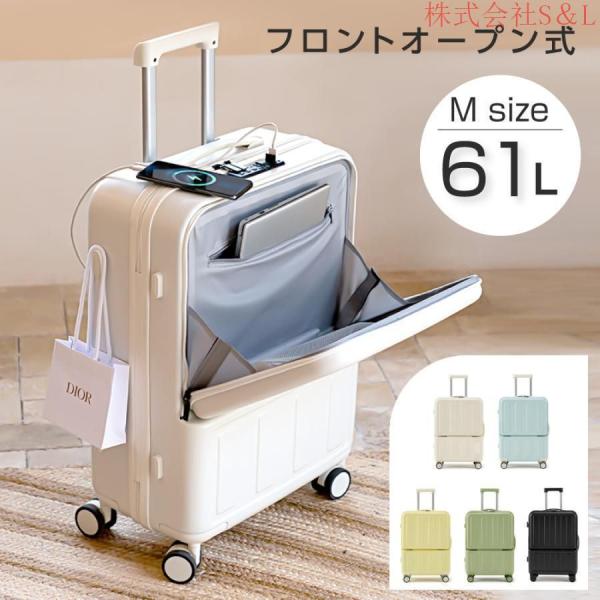 前開き スーツケース USBポート付き キャリーケース Mサイズ 5カラー選ぶ 株式会社S&L フロントオープン 4-7日用 泊まる 軽量設計 大容量 多収納ポケット