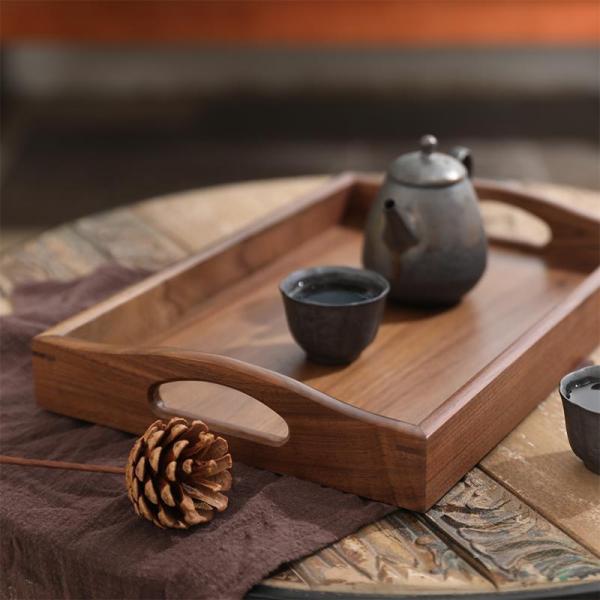 トレイトレー黒クルミの木木製取っ手付天然木製お盆食事トレー長方形ランチトレイカフェトレイ茶具フレア和風ブラウンアクセサリートレイ