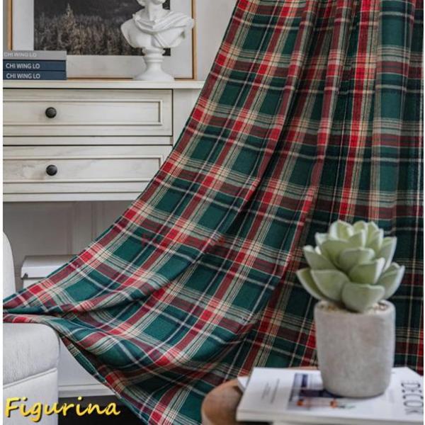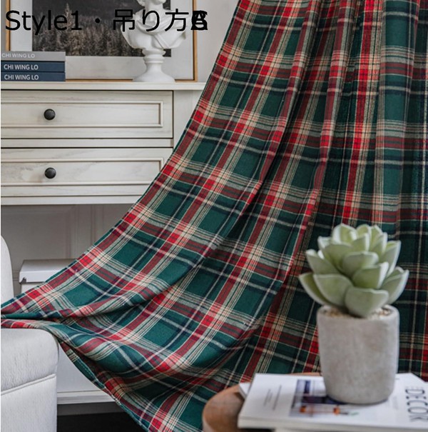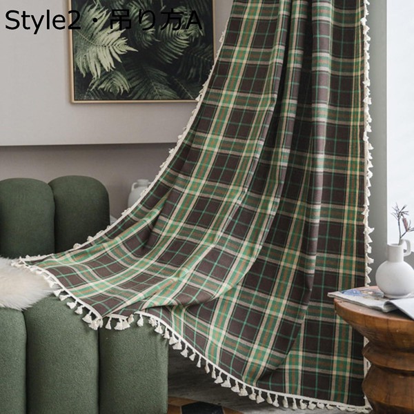 カーテン 可愛い チェック柄 グリーン 緑 グレンチェック レース 株式会社S&L パッチワーク 切り替え タッセル フリンジ付き フック式 半遮光 遮像