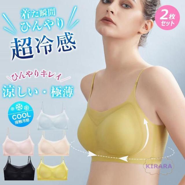 高品質 2枚セット 夏用ブラ 接触冷感 夏ブラ 涼しい ノンワイヤー ブラジャー レディース 春夏 軽量 吸汗 速乾 ひびきにくい ワイヤレス