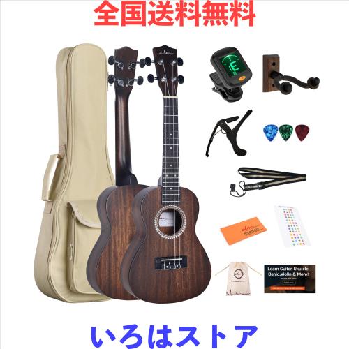 ◆商品名:ADM コンサートウクレレキット、23インチ マホガニー 初心者ウクレレセット - ギグバッグ、チューナー、ストラップ、指板ステッカー、ピ