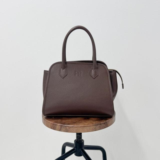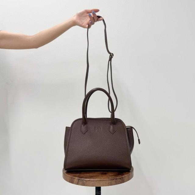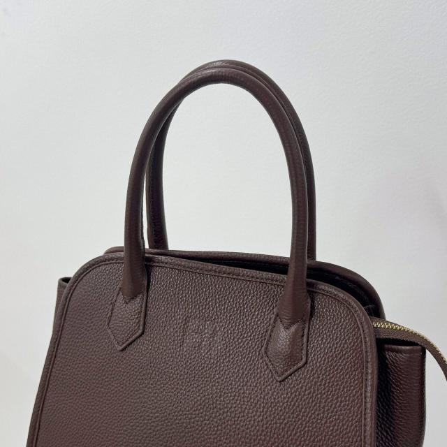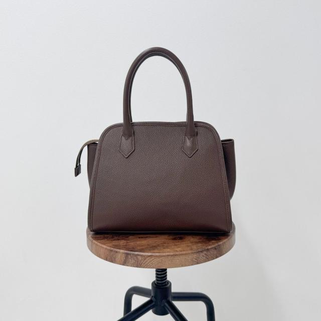 ・上品なフォルムと高級感のある質感が魅力な台形レザーバッグです