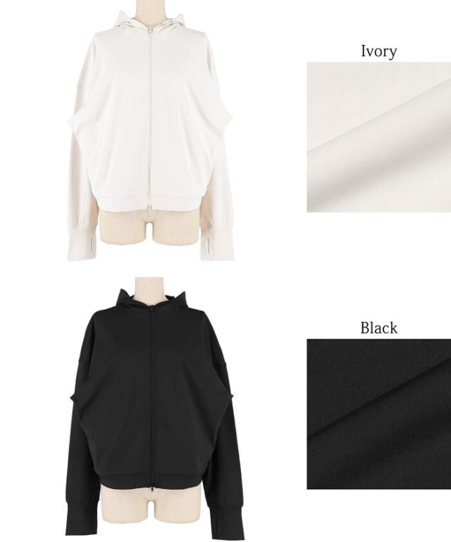 顔まわりをしっかり日差しから守るツバ付きフードで、屋外シーンでも安心。
