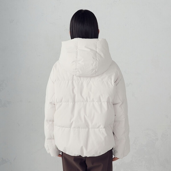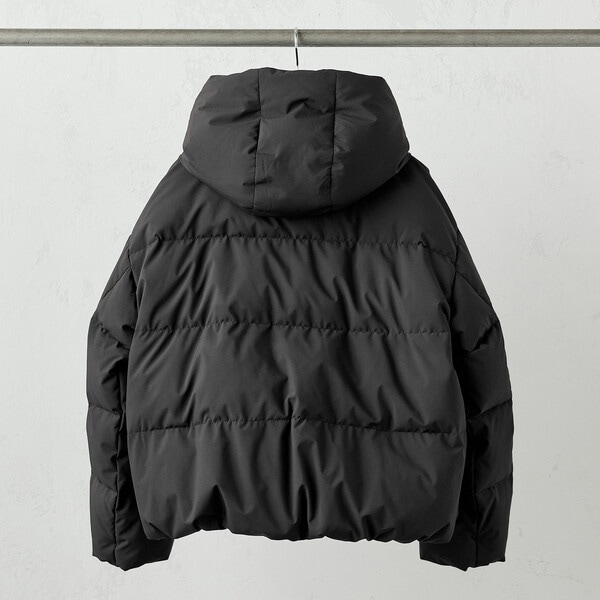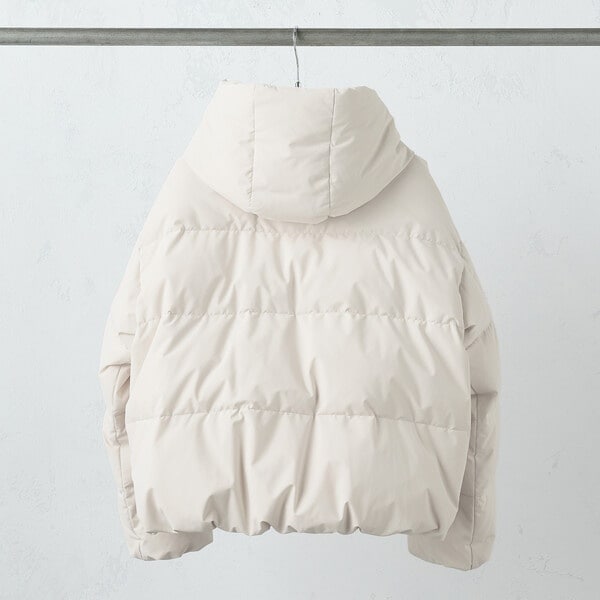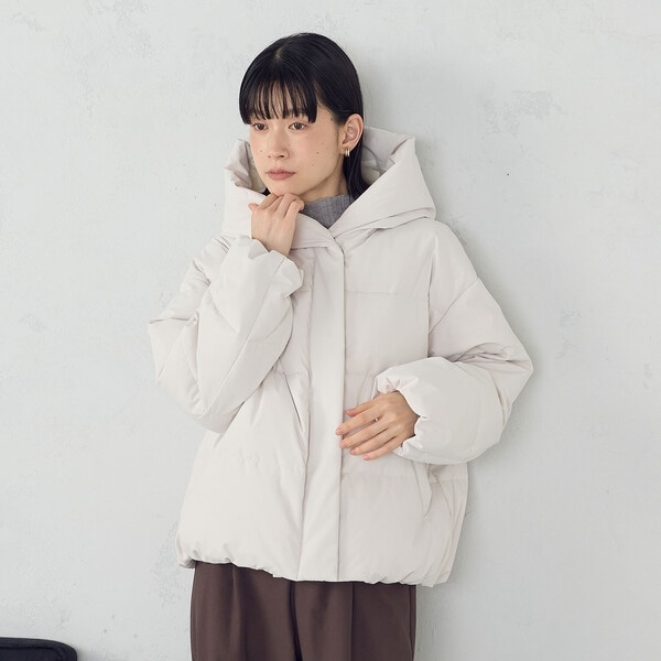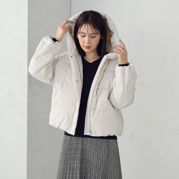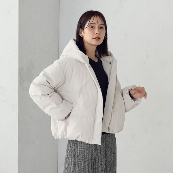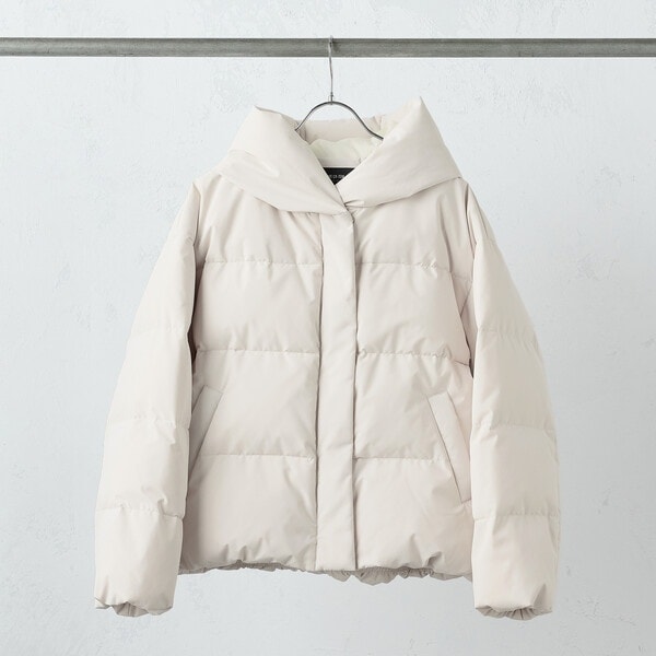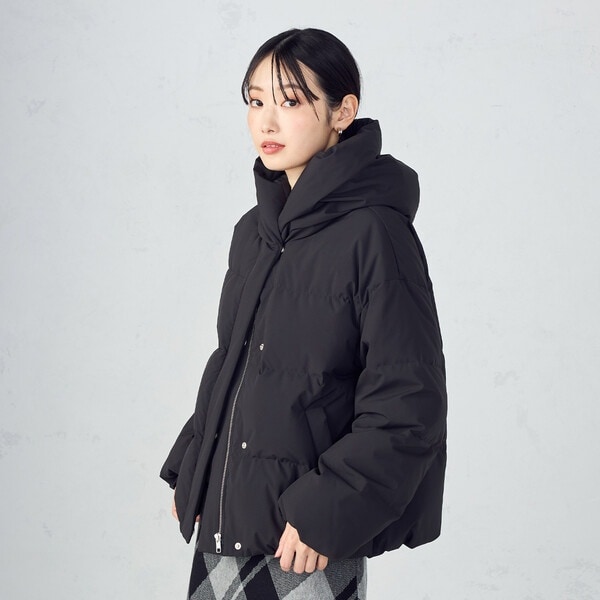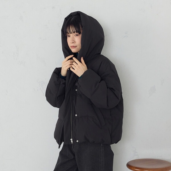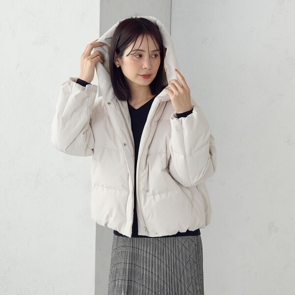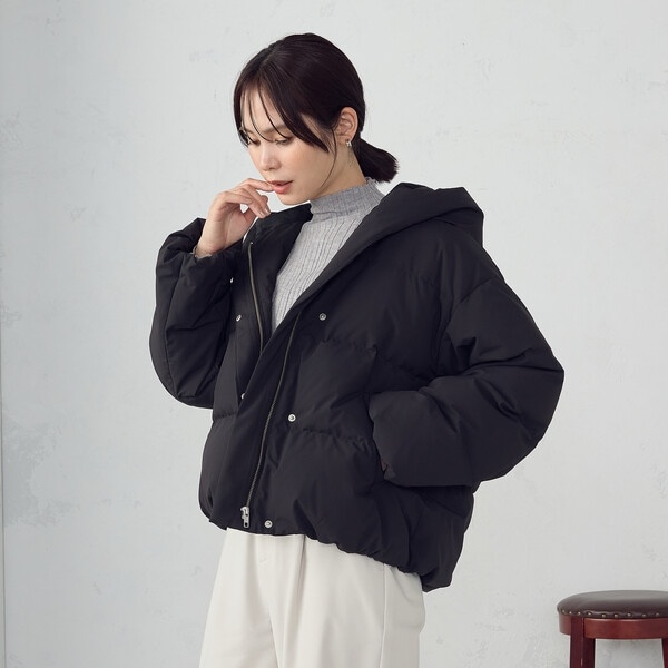 ボリュームのあるフードデザインのショートダウンです。