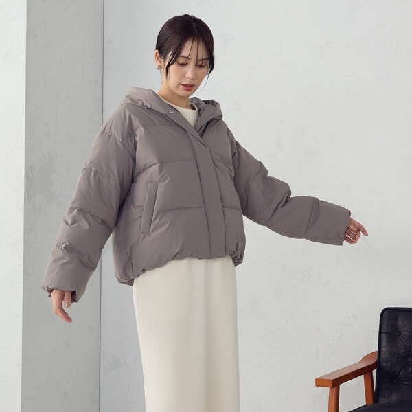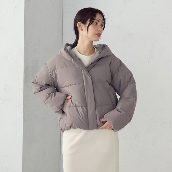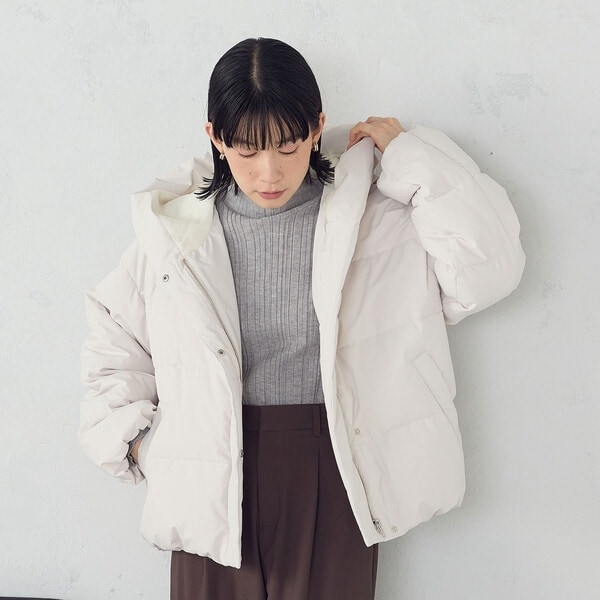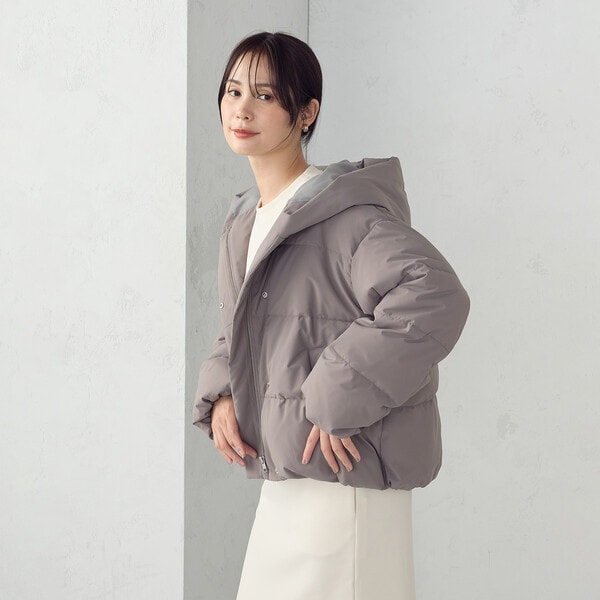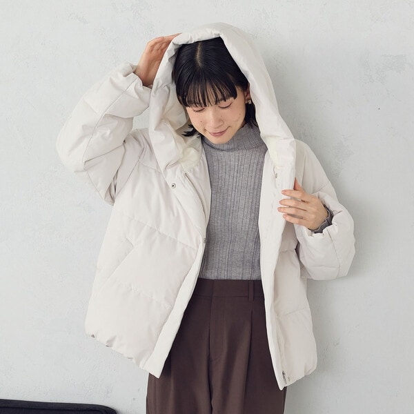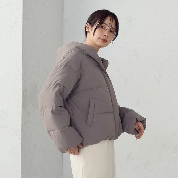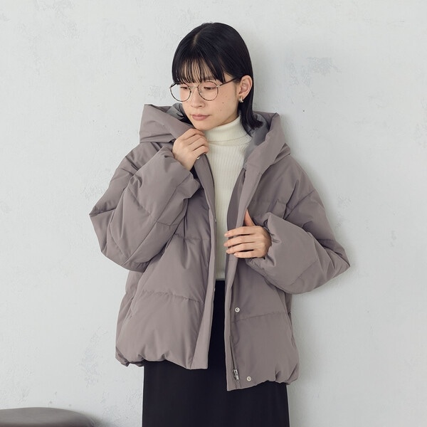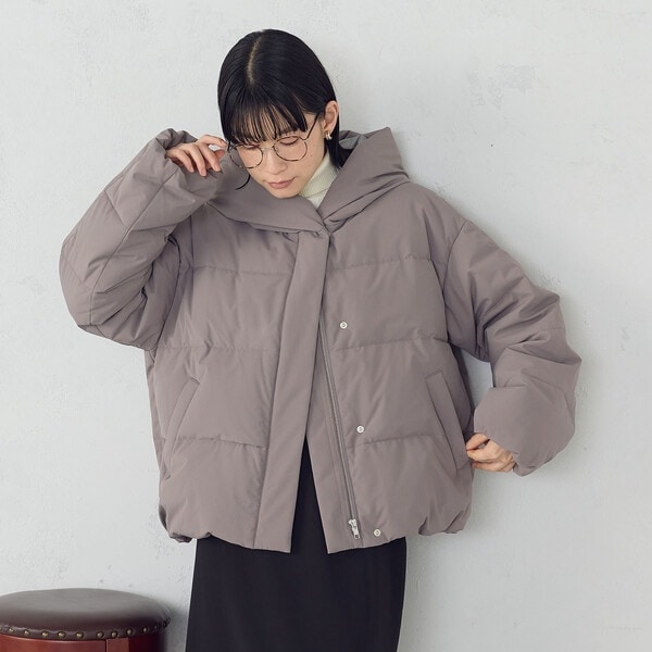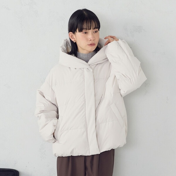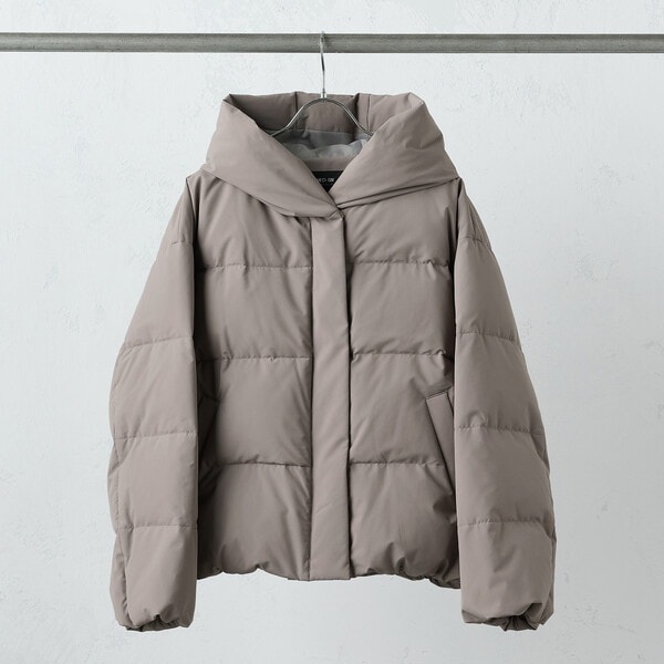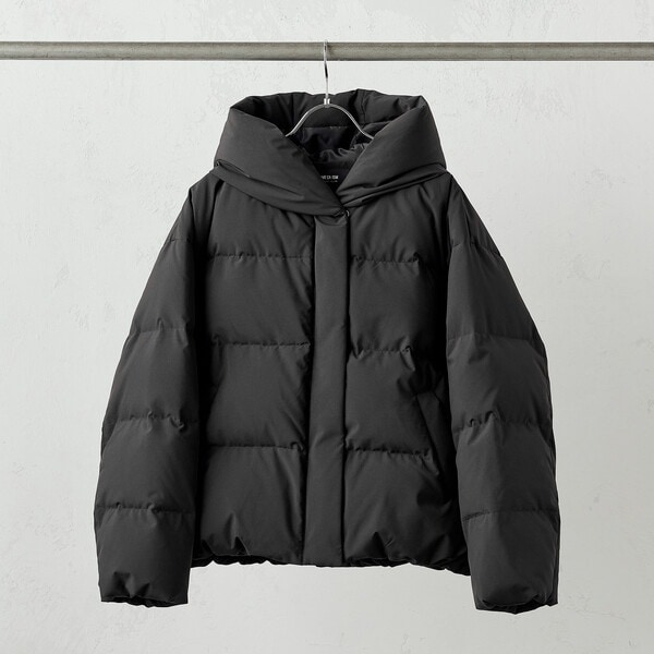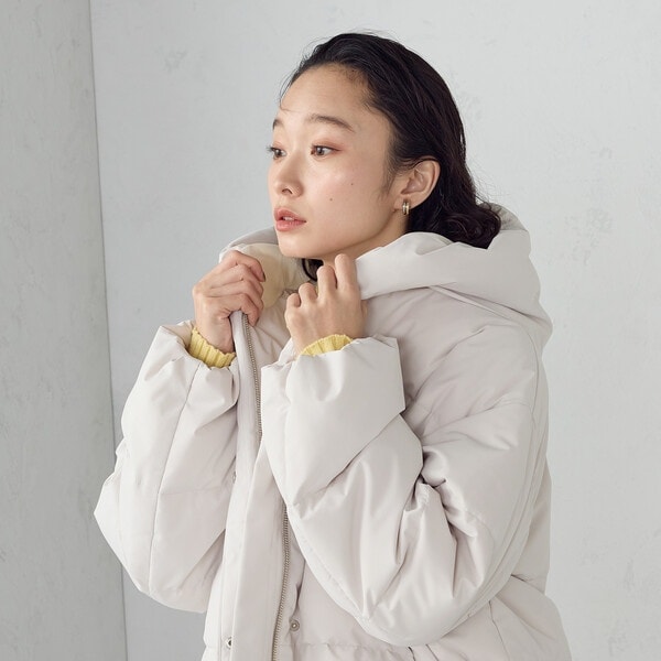 ボリュームのあるフードデザインのショートダウンです。