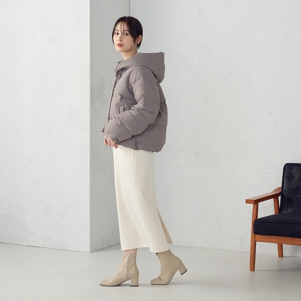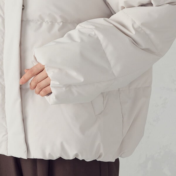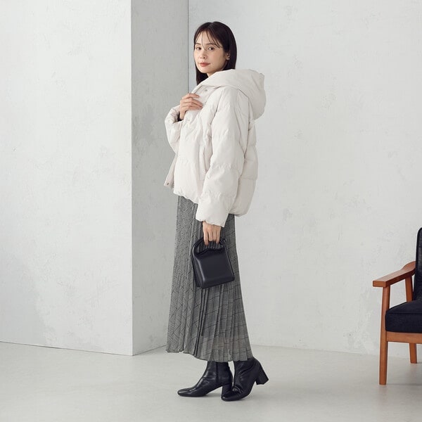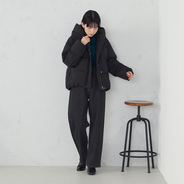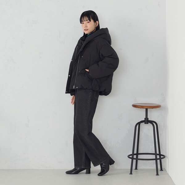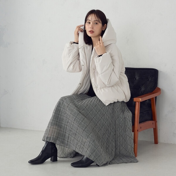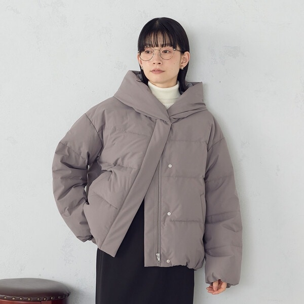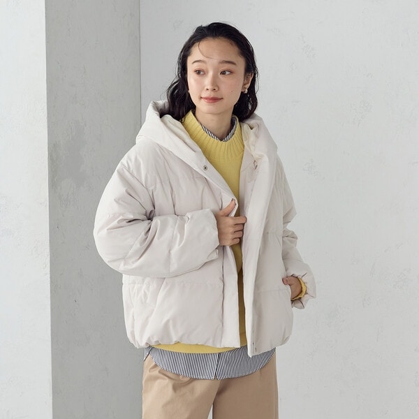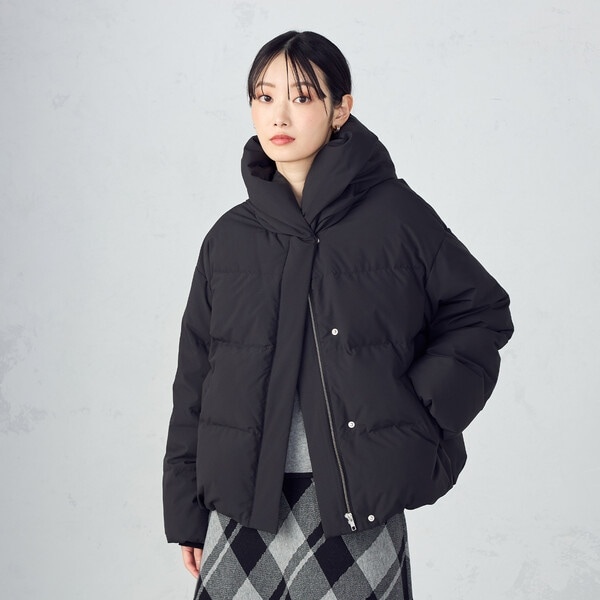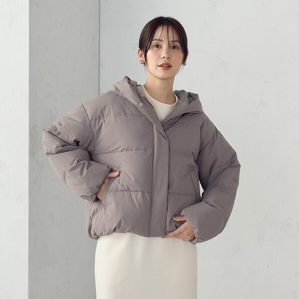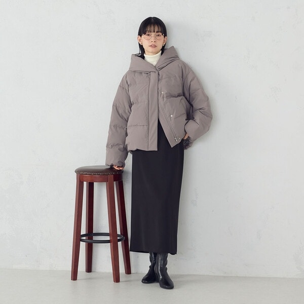 ボリュームのあるフードデザインのショートダウンです。