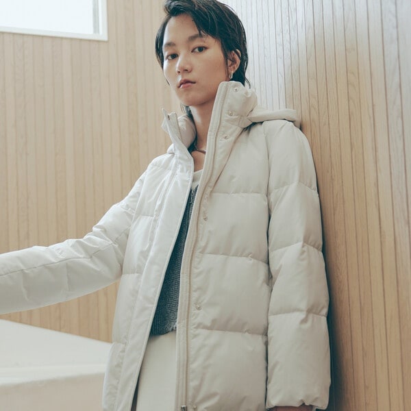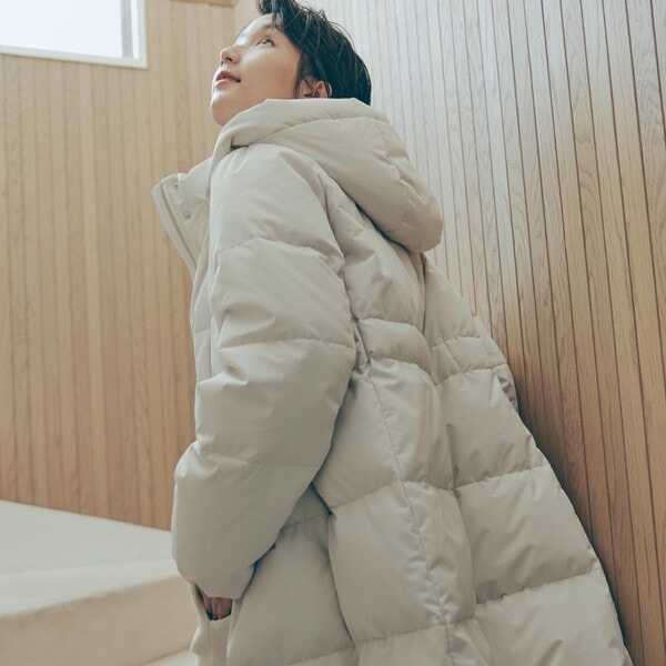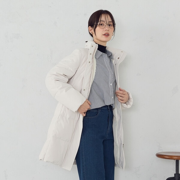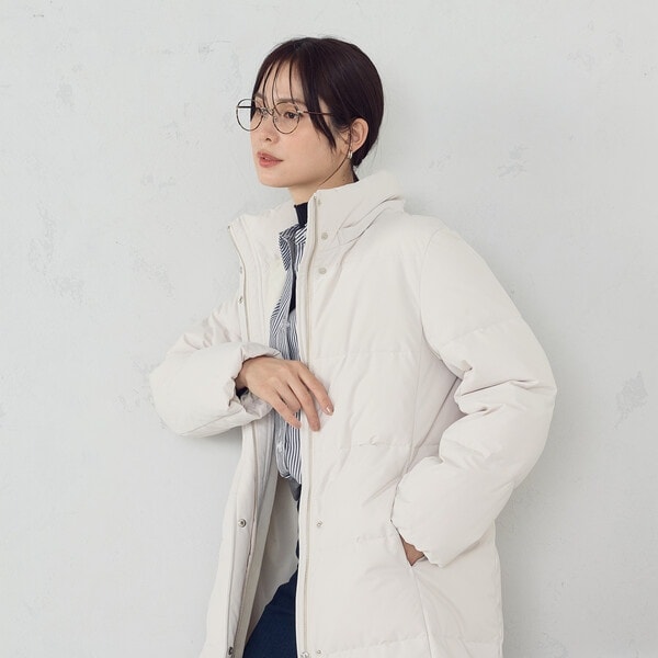 ダウンのステッチ幅にもこだわり、細見えするキレイ目シルエットに仕上げました。