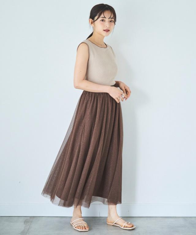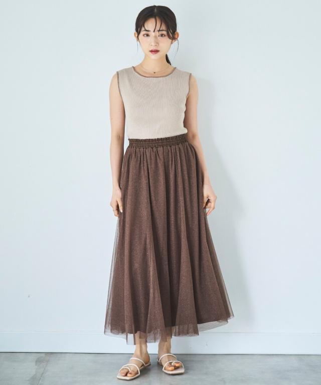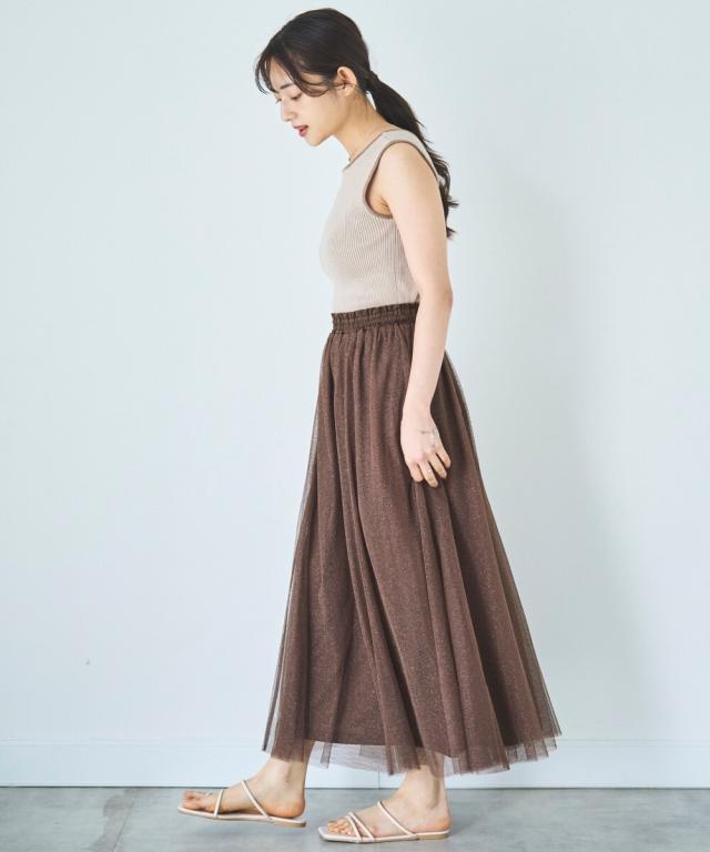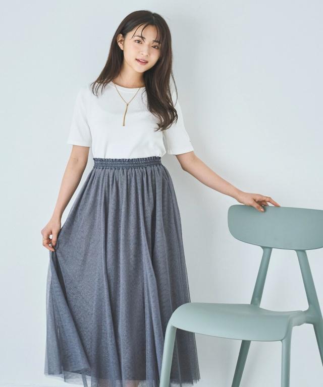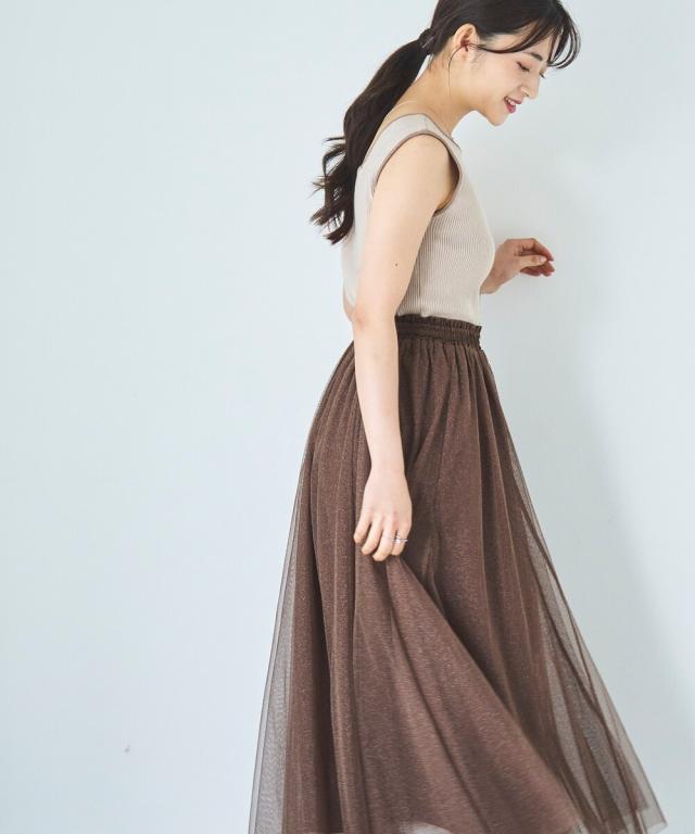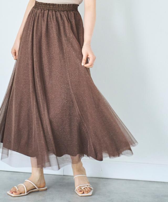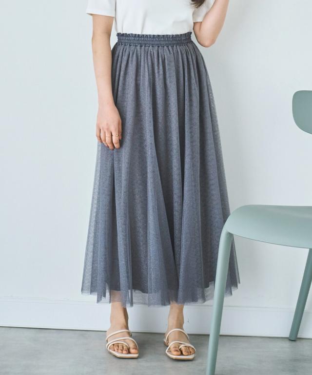 人気のチュール素材に、微細なラメを散りばめた大人のためのフェミニンスカートが登場。