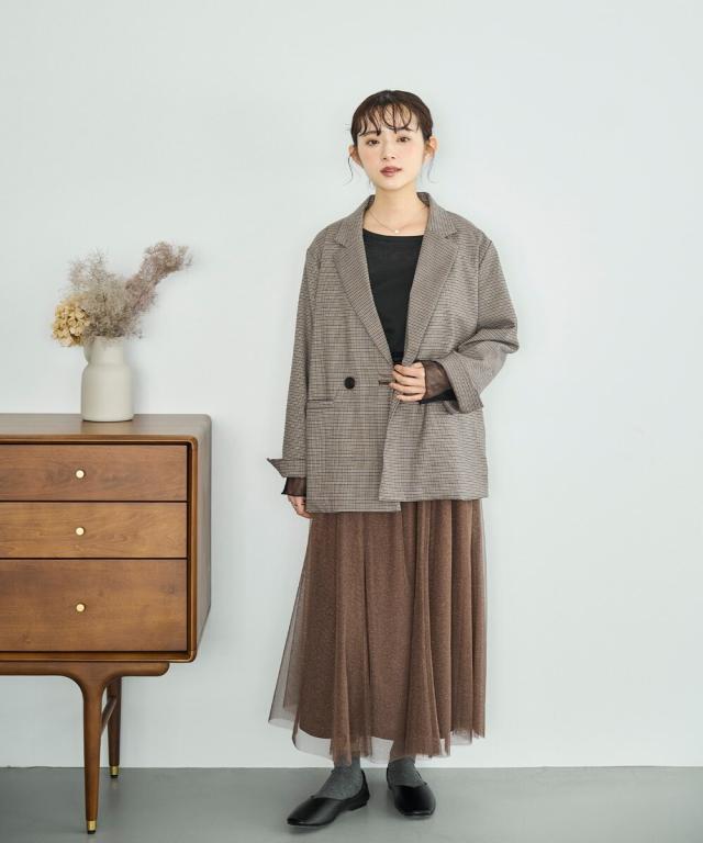 甘すぎない透け感と、上品なきらめきの絶妙なバランスでシンプルなTシャツに合わせるだけでも、ぐっと洗練された印象に。