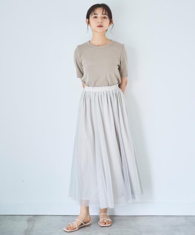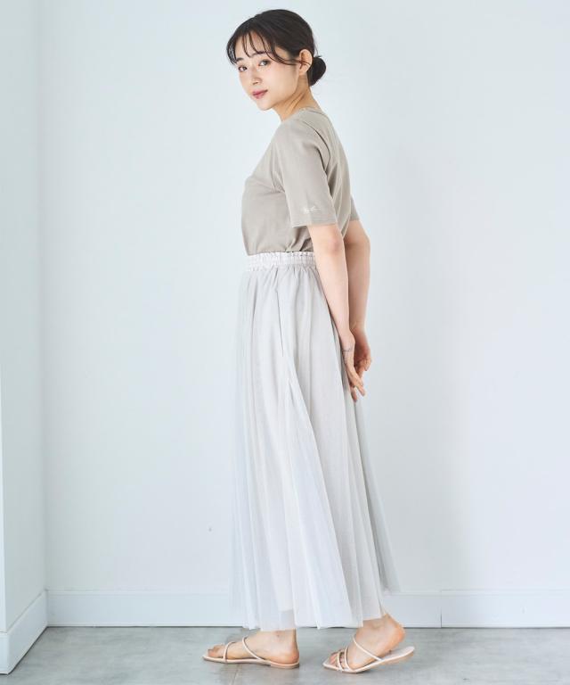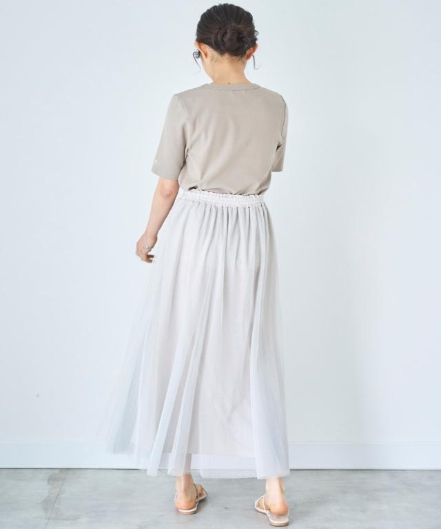 動くたびにたおやかに揺れるチュールとフレアシルエットが女性らしい柔らかさを演出します。