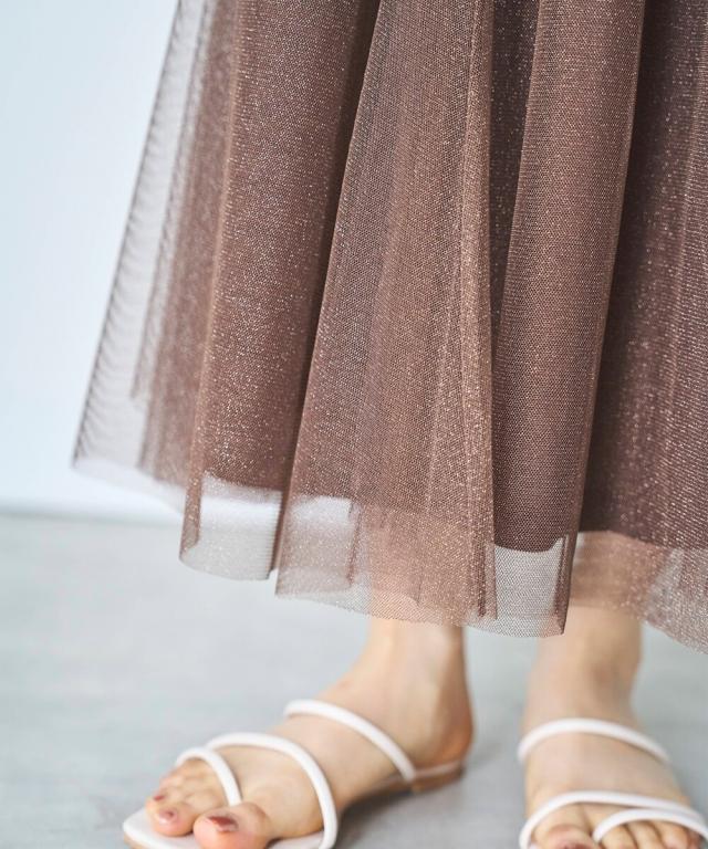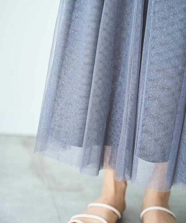 揺れるたび、繊細なラメがきらめくチュールスカート。