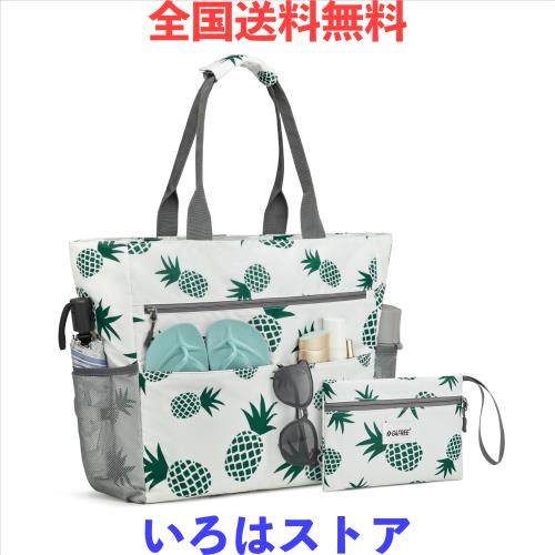 【便s利】女性用ビーチバッグは、内側、側面、前面に合計9つのポケットがあり、必要なものがすべて入ります。メインコンパートメントには、2つのインナーオープンポケットと1つのファスナーポケットがあり、財布や携帯電話などの重要なアイテムを収納できます。2つのフロント・ベルクロ・ポケットは、スリッパ、サングラス、日焼け止めなどを収納可能。2つのサイドメッシュポケットは、水筒や傘を収納できます。