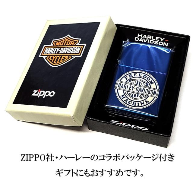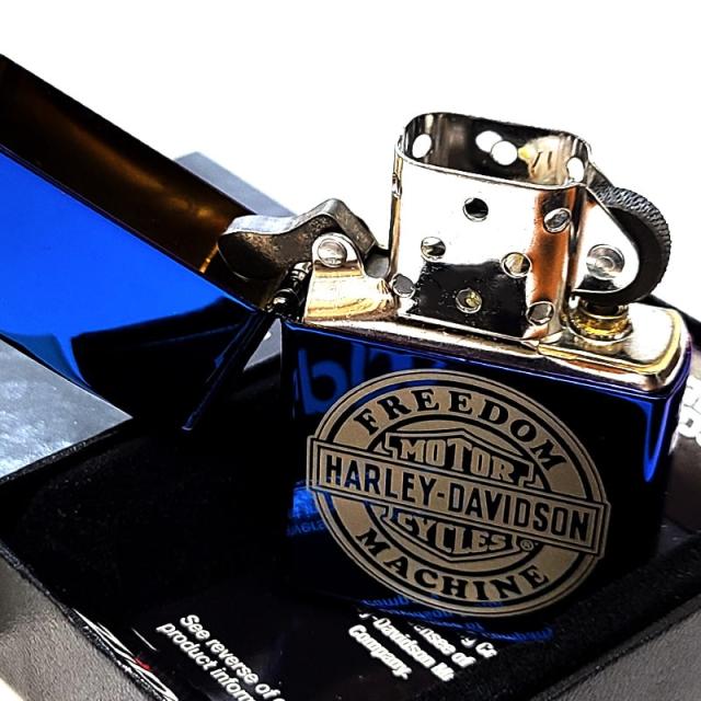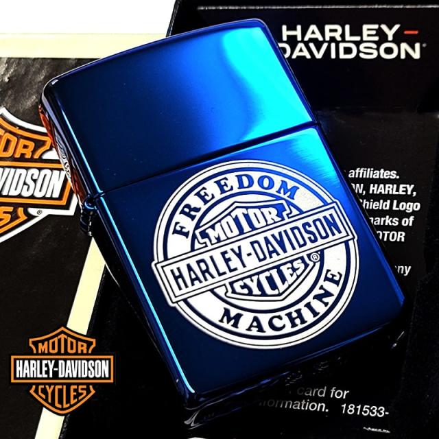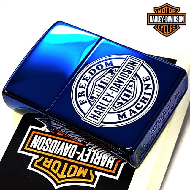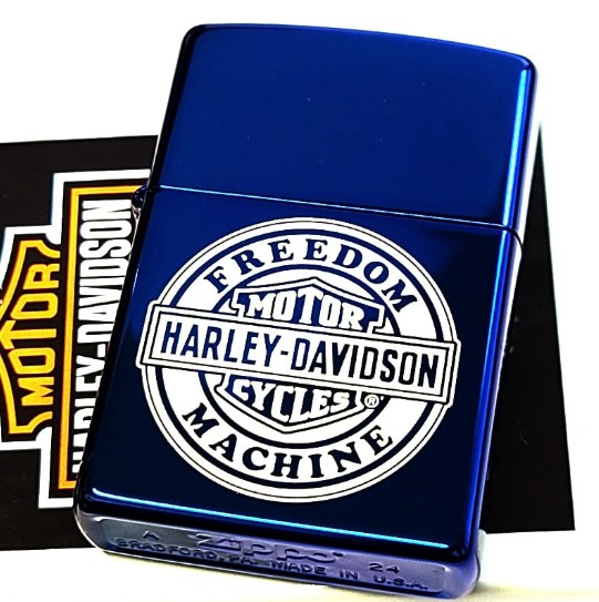 ZIPPO ライター ハーレー ダビッドソン サファイアブルー ラウンドロゴ シンプル レーザー彫刻 美しい ジッポ かっこいい 青 おしゃれ メンズ ギフト プレゼント