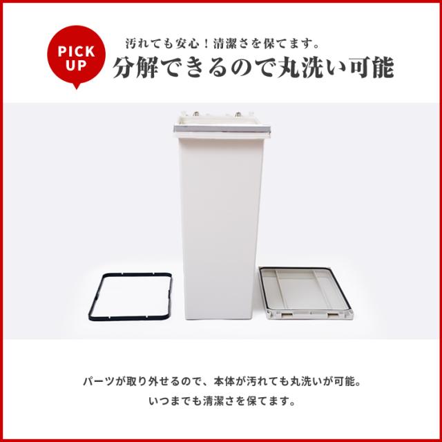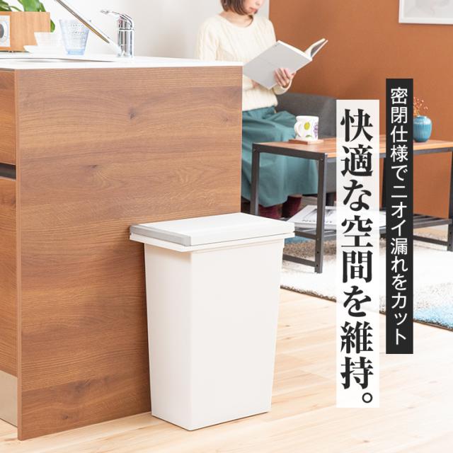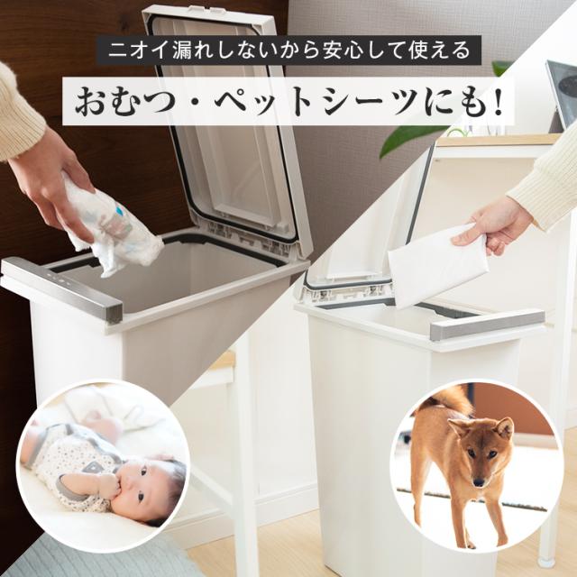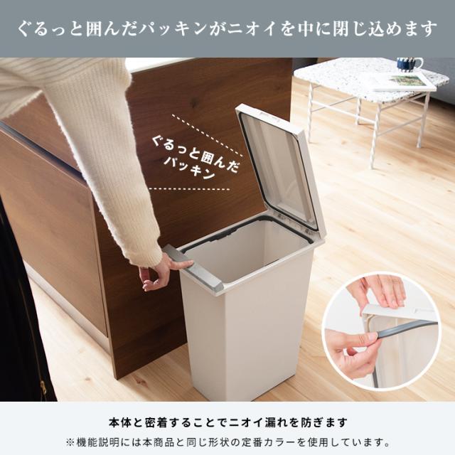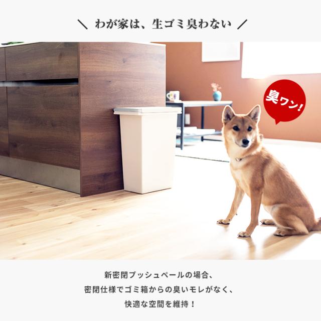 わが家は生ゴミ臭わない。密閉パッキン付きで臭いがもれない、デザイン性抜群のゴミ箱「エバン密閉プッシュペール」です。近年主流のオープンキッチンなどでの 生ごみのニオイ 問題を解決します。密閉性が高いので、食品だけでなく、赤ちゃんや介護のおむつ、犬猫用のペットシーツを捨てるのにも最適です。片手でスマートに開閉できるワンプッシュオープン式のフタでゴミ捨てラクラク。1人暮らしからファミリーまで使える、20リットル ・30リットル ・45リットル の3サイズ展開。容量 : 20リットル サイズ : 幅20.3×奥行35.0×高さ47.6cm材質 : フタ・本体・袋止め=ポリプロピレン、プッシュレバー=ポリスチレン、バネユニット=ポリアセタール、バネ=ステンレス鋼、パッキン=シリコーンゴム日本製