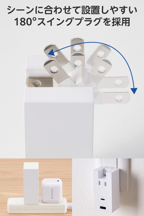 エレコム USBタップ コンセント 直挿し Type-C ×1 USB-A ×1 AC×1個口 15W 180度 スイング ホワイト ┃ECT-36-1ACWH