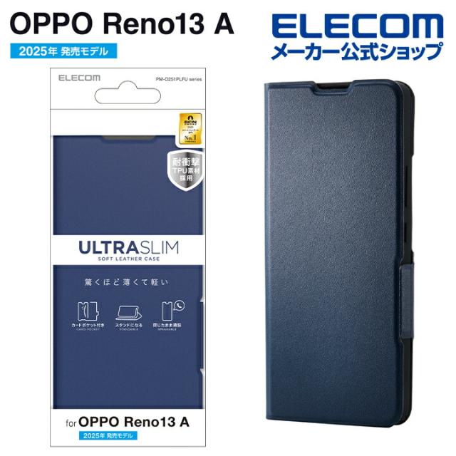 【在庫処分・お買い得!】 エレコム OPPO Reno 13A 用 ソフトレザーケース 薄型 磁石付 OPPOReno13A ソフトレザー ケース カバー ネイビー ┃PM-O251PLFUNV